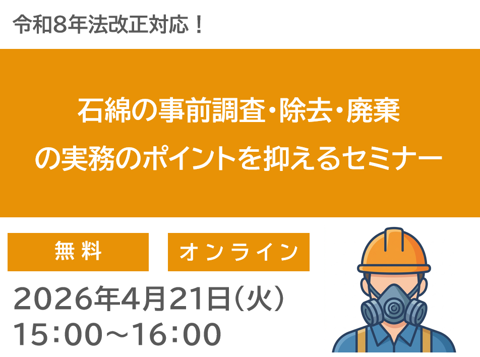 【4/21】石綿の事前調査・除去・廃棄の実務のポイントを抑えるセミナー【令和8年法改正対応】